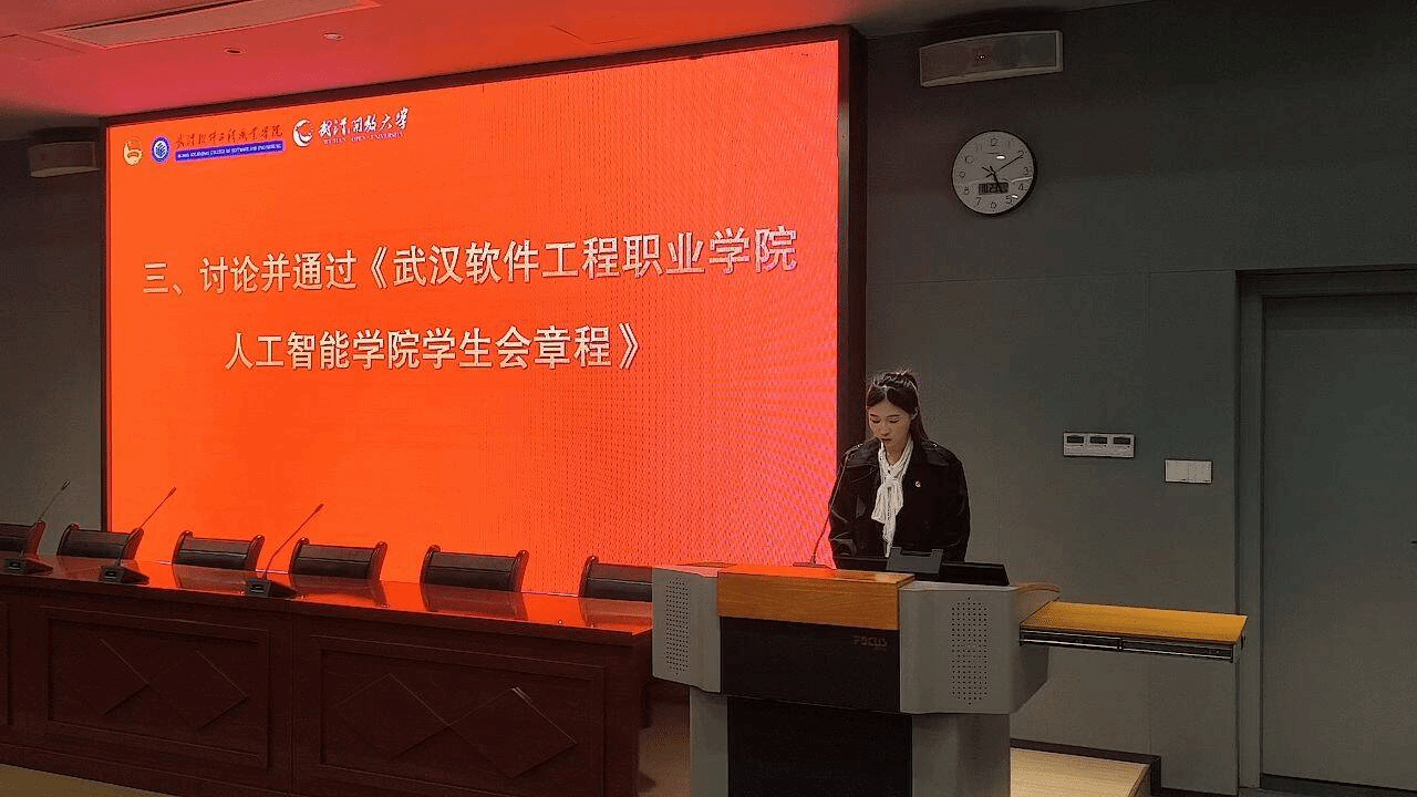 会上,全体代表以高度的政治责任感和使命感,审议并全票通过了《武汉软件工程职业学院人工智能学院学生会章程(草案)》。该章程的制定,为学生会未来规范运行提供了坚实的制度保障,体现了青年学子自我管理、自我服务、自我教育的坚定决心。