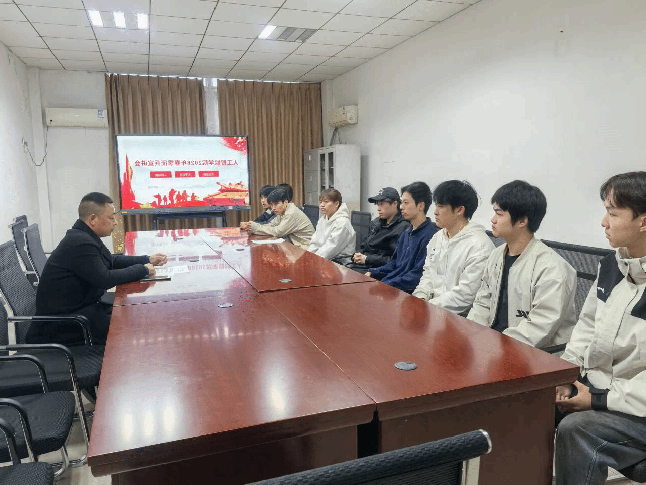 (通讯员 陈翔)为积极响应国家强军号召,精准引导2026届毕业生依托自身人工智能专业优势,投身国防建设大潮,人工智能学院在前期广泛调研、全面摸底毕业生应征入伍意愿的基础上,于近日成功举办了春季征兵精准指导座谈会。本次座谈会以“投身强军实践,赋能智能国防”为主题,创新采用“一生一策”的精准指导模式,为每一位怀揣军旅梦想的毕业生量身定制了从军之路。