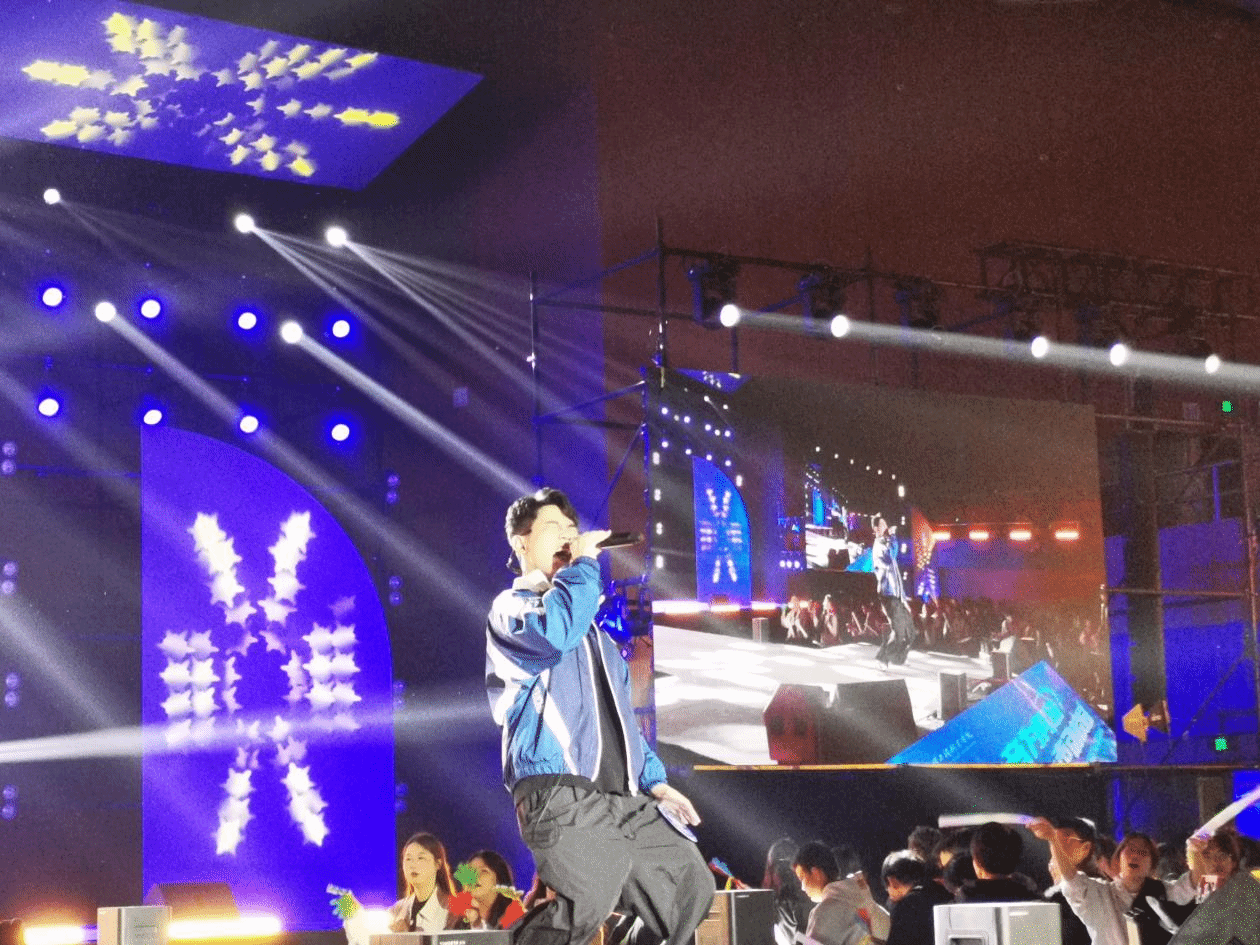 涂鑫龙的登场更是点燃全场。他台风稳健、气场全开,浑厚有力的嗓音如惊雷震荡,直击人心。从沉稳低吟到高亢副歌,他将歌曲中的奋进情怀诠释得淋漓尽致,每一个换气、每一次转音都彰显出专业水准。演唱过程中,现场观众自发高呼 “歌王”,欢呼声此起彼伏,成为当晚最动人的青春注脚。这份来自全场观众的由衷认可,是对他实力最直接的肯定,更是他音乐路上最珍贵的勋章。