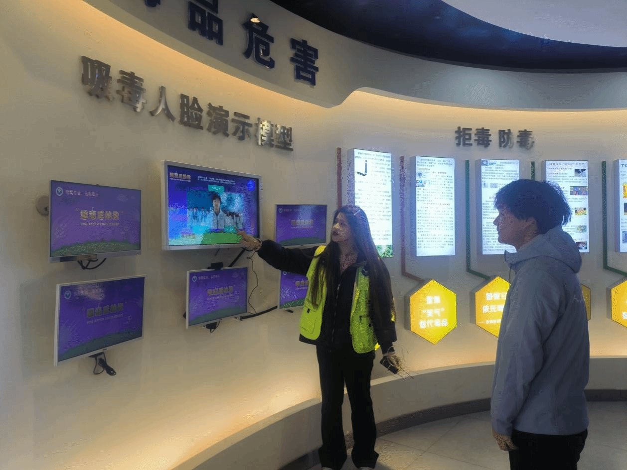 参观过程中,禁毒数字化管控平台成为现场焦点,团员青年们直观感受到了大数据、智能化技术在禁毒工作全链条的落地应用,深刻认识到科技对禁毒工作的赋能价值。禁毒知识互动问答专区,枯燥的禁毒法律法规、毒品辨识技巧、防毒拒毒常识转化为趣味比拼内容,大家踊跃参与、积极抢答,实现从“被动听讲”转为“主动学习”的转变,在轻松互动中巩固学习成果。VR体验区里,大家借助前沿虚拟现实技术,沉浸式感受吸毒后器官衰竭、容貌损毁、家庭破裂的惨痛后果,直面毒品对个人、家庭、社会的毁灭性危害,彻底打破“毒品离自己很远”的认知误区,内心受到强烈震撼与深刻警示。
