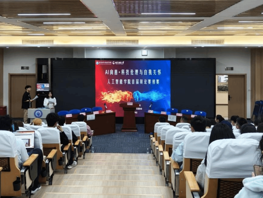 (通讯员 赵子晗、黄昊天)4月8日下午,人工智能学院首届“AI向善・科技伦理与自我关怀”主题辩论赛初赛在学术楼四号报告厅顺利举行。学院以赛事为载体,将专业学习、价值引领与思辨训练有机融合,大力弘扬AI向善理念,引导青年学子厚植人文情怀、坚守科技伦理、加强自我关怀,切实达到了以赛促学、以辩明道、以论正风的效果。