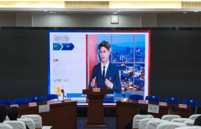 赛事现场亮点突出、形式新颖。学生自主打造的AI数字人“小天”担任赛事引导官,清晰介绍赛制流程及辩论规则,将智能技术应用与赛事服务深度结合,充分展现了学院专业建设成果与创新实践特色,实现了“用AI讲好AI、以技术诠释伦理”的生动场景。