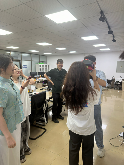 活动现场,团队教师围绕深度学习、计算机视觉、具身智能等前沿技术以及AI技术在医疗健康领域应用场景的开发等问题,与各单位进行了广泛和深入的交流。团队同学亲身体验了实时检测头盔、人形机器人以及基于边缘计算设备的智能感知系统等多种借助人工智能技术研发的产品,聆听了企业技术负责人与行业专家对于行业发展趋势、技术应用案例以及创新应用经验的介绍。企业代表在技术难题、职业规划等方面,为同学们热情地答疑解惑。
