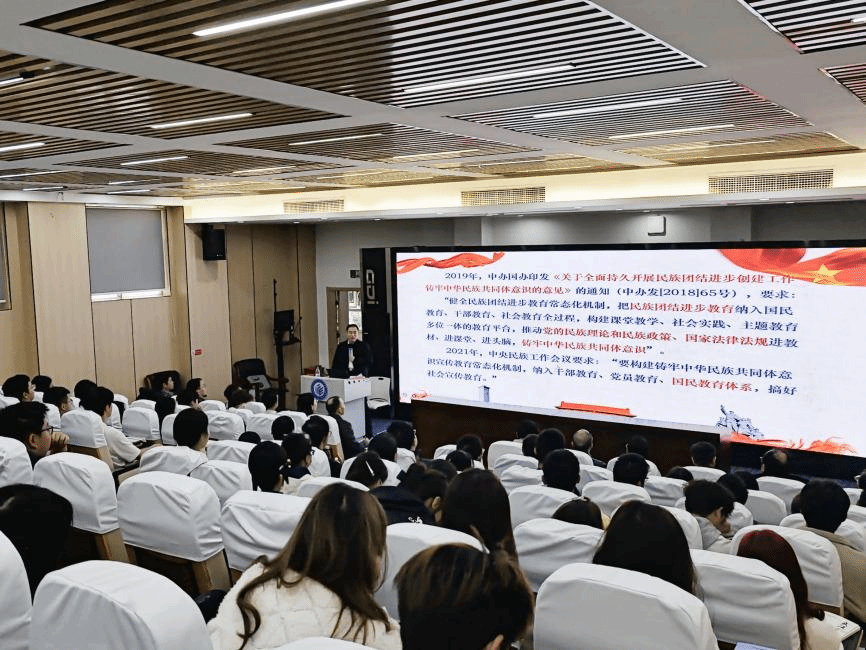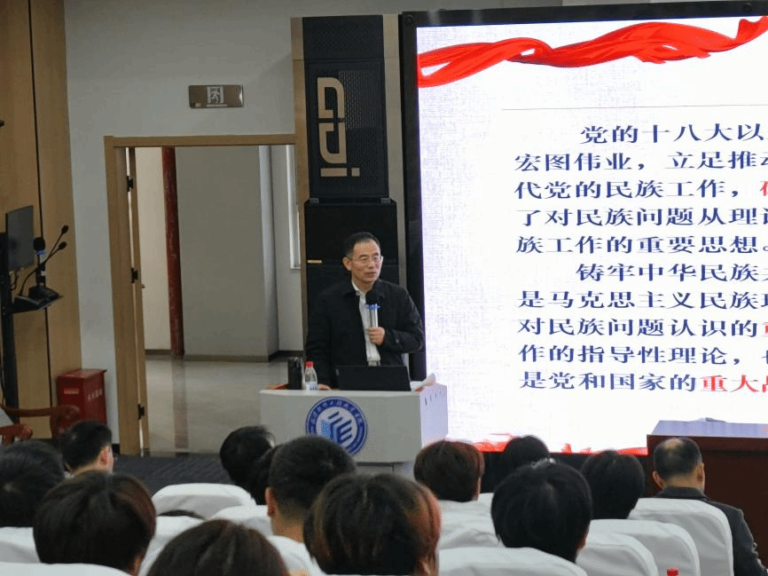 讲座过程中,蒋书记紧扣“铸牢中华民族共同体意识”这一核心主题,深入阐述了其深远的战略意义,他详细解读了中华民族共同体意识的丰富内涵,并明确提出了实践这一理念的具体途径。蒋书记强调,全体师生应将铸牢中华民族共同体意识内化于心、外化于行,在教育教学、社会实践及日常交往中,积极成为民族团结进步事业的维护者、促进者和实践者,共同推动各民族走向社会主义现代化。