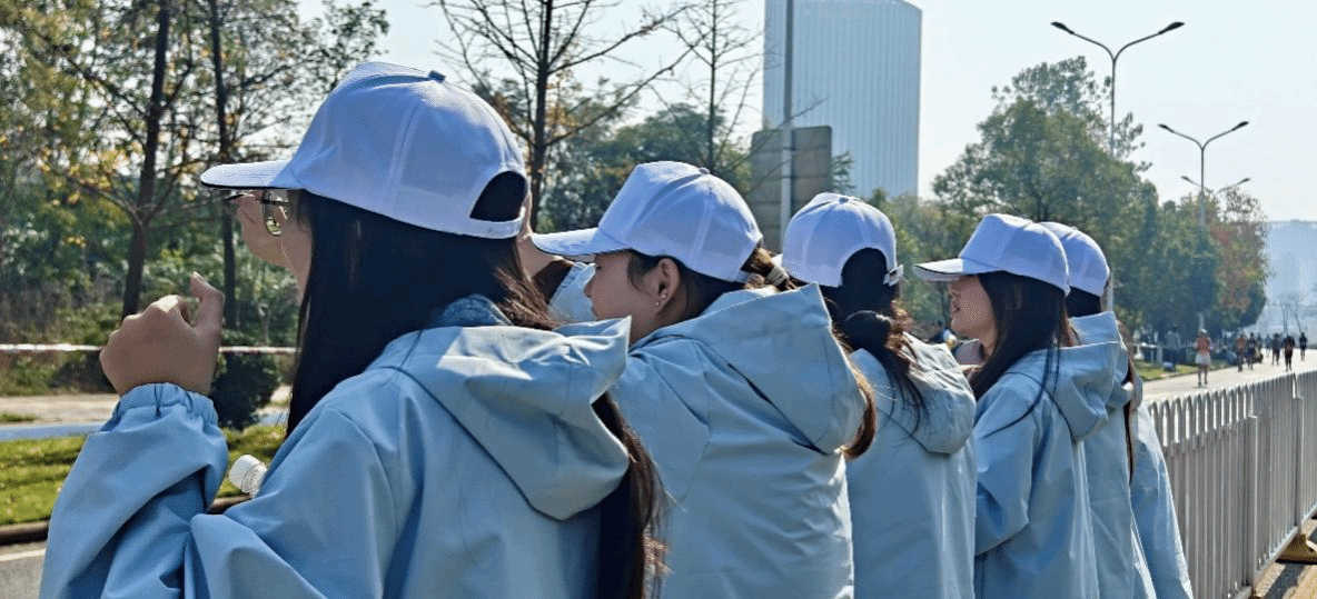 从去年寒风细雨中的坚守到今年晴日里的相伴,变的是天气,不变的是人工智能学院志愿者“精准高效、严谨务实”的服务准则——这与AI领域“算法精准、流程闭环、体验优化”的专业逻辑一脉相承。学院高度重视此次志愿服务,赛前围绕赛事流程、岗位职责、应急处置、服务礼仪开展专项培训,而志愿者们将课堂上习得的“模块化思维”“场景化分析”能力自然融入准备工作:从建立分级管理群实现信息高效流转,到预设选手突发状况的“应急响应预案”,再到根据赛道节点需求优化分工排班,每一个环节都透着AI学子特有的“流程化设计”思维。