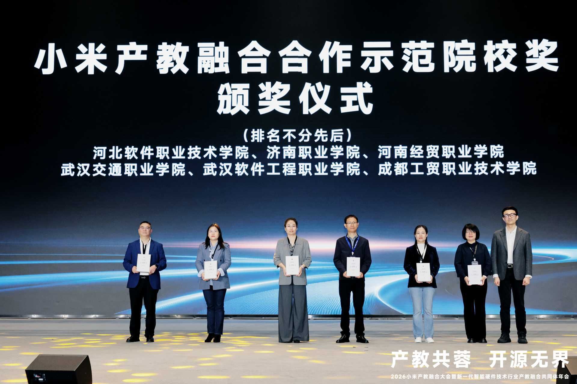 (通讯员 杨波)4月11日,“产教共蓉·开源无界”小米产教融合大会暨新一代智能硬件技术行业产教融合共同体2026年会在四川省成都市科幻馆举行。我校受邀参会,获评“小米产教融合合作示范院校奖”,成为全国6所获得此项荣誉的学校之一。